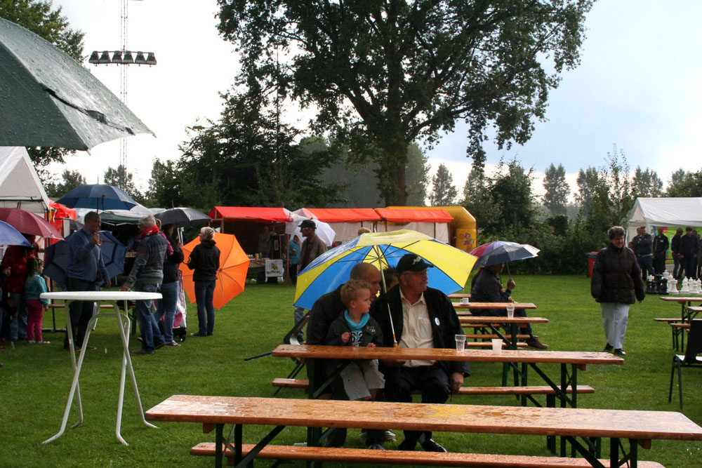 Gisteren was de laatste zondag van de schoolvakanties; dan is het achter het kerkplein weer een mooie afsluiting met veel activiteiten om mede de belevenissen van de zomer door te spreken (klik hier voor foto's). Velen zullen weer een mooie periode afsluiten en daarna weer het dagelijkse leven moeten oppakken. Aan alles komt een eind. Het weer was "na regen komt zonneschijn". Er was voor ieder wat wils, ook voor de inwendige mens werd gezorgd, hapjes, drankjes; ze hadden er zin in dat was wel te zien. Jong en oud vermaakte zich prima, mede door de zang en dans en klanken van de verschillende medewerkers. De kers op de taart was de actie van Pastoor Joost toen de ijsemmer, voor het goede doel ALS, over hem heen ging. Het was dit keer weer erg geslaagd. Jammer van die stortbuien. Bedankt voor diegene die dit alles weer tot een succes hebben gemaakt.