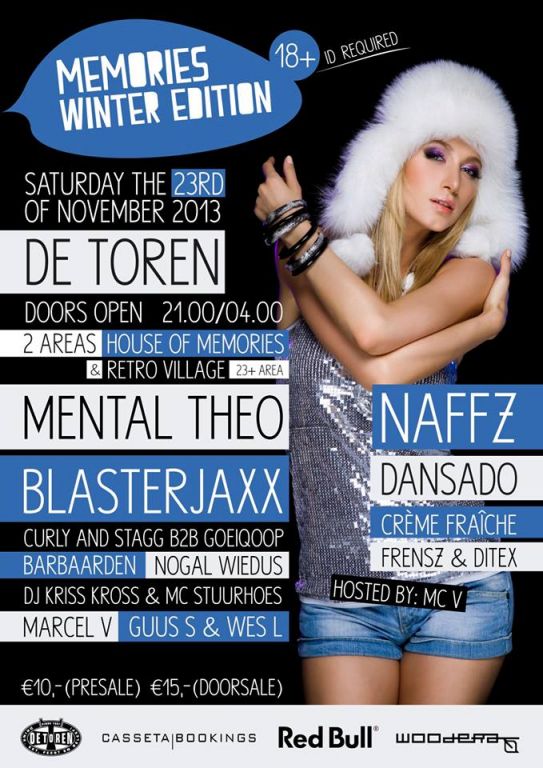 Memories Events brengt in samenwerking met Café/zaal de Toren alweer de 3e editie, in de reeks van het succesvolle concept 'Memories Winter Edition'. Na twee uitverkochte edities op rij heeft de organisatie dit jaar wel een heel unieke line-up in elkaar gezet, vindt ook organisator Tom Sleddens, 'Vergeleken met voorgaande jaren is dit jaar zeker uniek met niet één maar wel drie headliners!'.