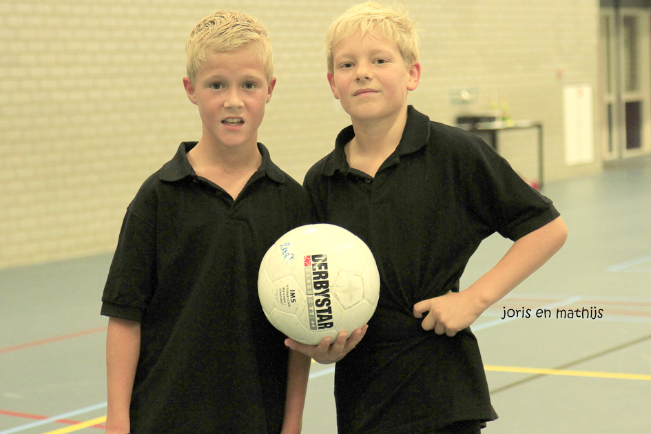 Twee tegen twee werd gespeeld in onderlinge wedstrijden van 6 minuten. De kinderen hadden ook de opdracht om zelf een wedstrijd als scheidsrechter te functioneren. En dat ging iedereen prima af. “Samen sporten met respect voor je tegenstander, dat is wat wij hier gaan beleven” zei Nicole Korsten bij haar inleidend praatje. Het toernooi werd gewonnen door Joris en Mathijs. In een gelijkopgaande wedstrijd maakte Mathijs met een schitterende individuele actie het enige doelpunt. Joris en Robin waren de teleurgestelde maar sportieve verliezers.
