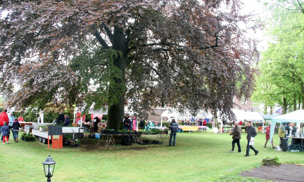Altijd zonnig, behalve vandaag, tijdens de jaarlijkse rommelmarkt in de prachtige kerktuin van de Protestantse Kerk. Maar de standhouders smelten niet van een beetje regen en ook de bezoekers lieten zich van hun zonnige kant zien. Bij de loterijtrekking liepen sommige bezoekers echter hun prijs mis, omdat ze al naar huis waren. Volgend jaar maar wat langer blijven!