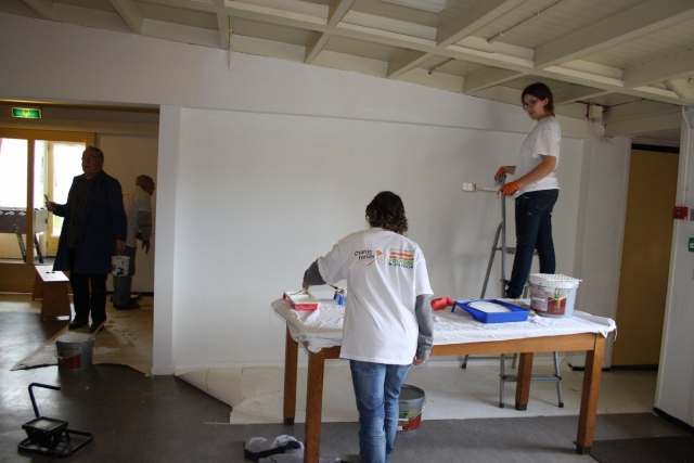Buro Lima (Pastorie Dinther), al 'n paar weken zijn veel vrijwilligers aan het verhuizen en opknappen van hun nieuwe stek.