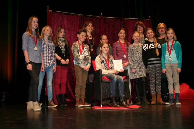 Babette Hulsman van basisschool Beekgraaf uit Nistelrode, die als laatste haar verhaal mocht voorlezen, nam de felbegeerde titel mee naar huis.