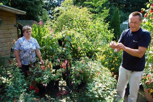 Dit is op de eerste plaats voor de talrijke fuchsia's die zij gekweekt hebben, maar er zijn ook heel veel andere bloemen. Voor foto's klik hier.