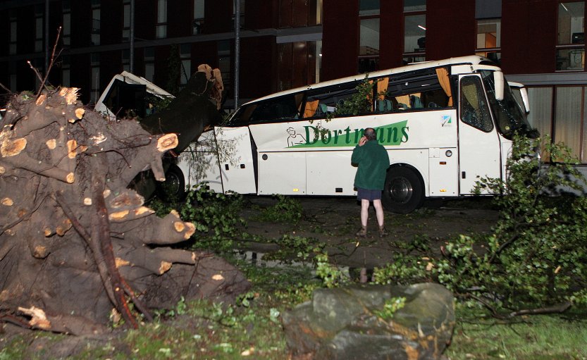 In de Martinilaan in Vught kwam ook een touringcar van Taxibedrijf Dortmans onder een boom terecht. Er vielen hierbij geen gewonden.