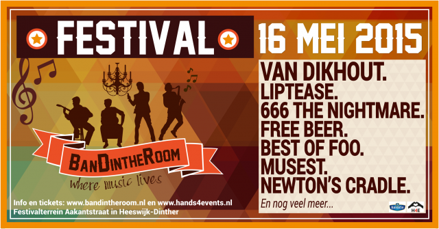Aanvang van het festival op zaterdag 16 mei is 14.30 uur. Kaarten kosten 20 euro in de voorverkoop , dagkassa € 25,- mits voorradig. Voor meer informatie: www.bandintheroom.nl