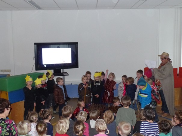 De speelzaal van de Heeswijkse basisschool Het Mozaïek was donderdagmiddag het decor voor een sfeervolle kerstmusical, die werd uitgevoerd door de kleuters van groep 1-2B van Het Mozaïek. Onder het publiek waren onder meer de andere kleuters van de basisschool, kinderen van peuterspeelzaal Piccino en kinderen van Kinderdagverblijf Klein Drakestein. In de mini-kerstmusical ‘MET MOZART BIJ DE STAL’ gingen de leerlingen samen op reis, rustten ze wat uit bij de herders, volgden ze de sterren en kwamen ze uiteindelijk bij de stal van Jozef en Maria. Daar gaven ze een werkelijk fantastisch en ritmisch optreden voor het kindje Jezus.