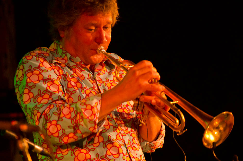 Vloeimans volgelingen konden gisteren twee maal hun idool zien. 's Middags om 5 uur op t.v. in een programma van Avro's kunstuur en gisteravond live in een overdadig gevulde Kersouwe. In Avro's kunstuur sprak Vloeimans nog over een "natte" akoestiek. "Dat is als de toon blijft hangen", legde hij uit.