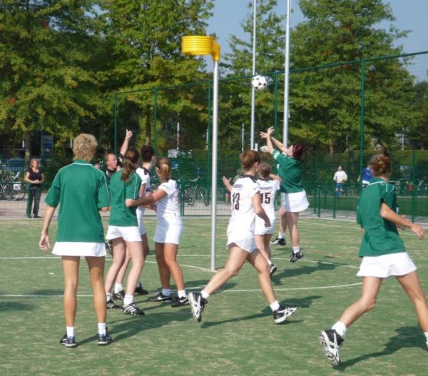 Spannend zeg, zo'n eerste wedstrijd. Anne, Femke, Maud, Sharyn en Vera gingen samen met coaches Ellen en Sanne naar de sporthal om te spelen tegen Celeritas. Met de mascotte om de korf, zodat we de goede kant op zouden gaan, begon de wedstrijd. Leuk als je zo samen kunt korfballen en nog leuker als je ook nog wat doelpunten kunt maken. We waren ongeveer even goed, alleen jammer, dat Celeritas iets vaker heeft geoefend dan wij. We verloren met 2-3.