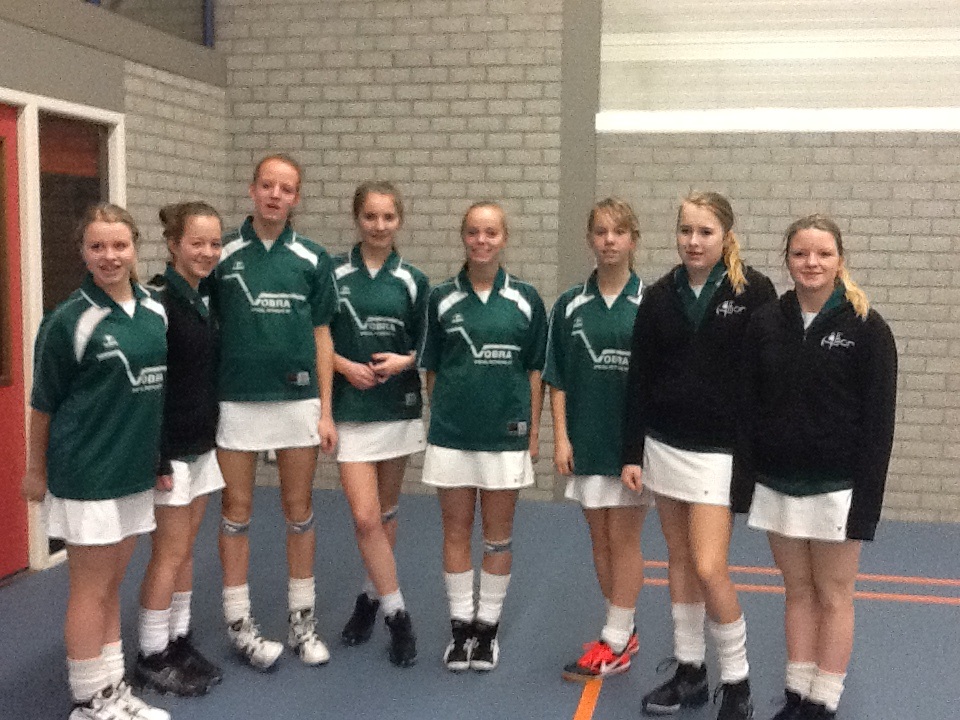 We gingen als een speer van start. Binnen enkele minuten stonden we met 4 doelpunten voor en konden we de voorsprong ook nog verder uitbouwen. De aanvallen liepen goed en er werd gemakkelijk gescoord. Verdedigend kwamen we niet echt in de problemen waardoor we met een mooie voorsprong konden gaan rusten. In de eerste tien minuten van de tweede helft had de tegenstander de manier van verdedigen aangepast en werd het moeilijk om goede aanvallen op te zetten. Er werd helemaal niet gescoord en even leek het erop dat we het misschien nog moeilijk zouden krijgen. Gelukkig was dit maar even... We wonnen uiteindelijk met 16-6. Ilse, Maartje, Marloes en Nienke: super bedankt voor het meedoen, jullie hebben het heel goed gedaan!