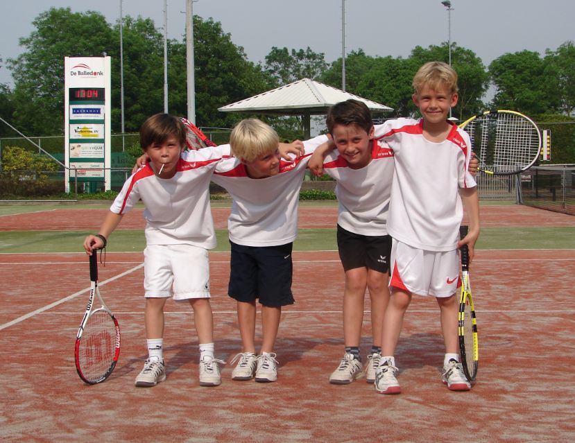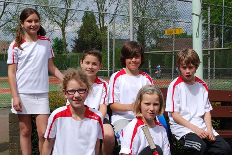 Ook het ‘Rood’ team mocht thuis spelen. Dit team bestaat uit 4 kinderen die allen ongeveer 1 jaar lid zijn van de tennisvereniging en externe competitie spelen op een minibaan. Voor de eerste keer wisten zij alle 6 wedstrijden te winnen. Goed gedaan en ga zo door Evi van Lamoen, Laurette van Abelen, Jaap van Eerd en Amanda van Lankveld. Deze kinderen van wie er 2 nauwelijks 6 jaar zijn, laten zien dat je al op hele jonge leeftijd goed tennissen kunt leren door les te volgen, volop mee te doen aan interne activiteiten en door zelfs al competitiewedstrijden tegen andere clubs te spelen in teamverband. Dit laatste mede gesteund door enthousiaste ouders die het team begeleiden.