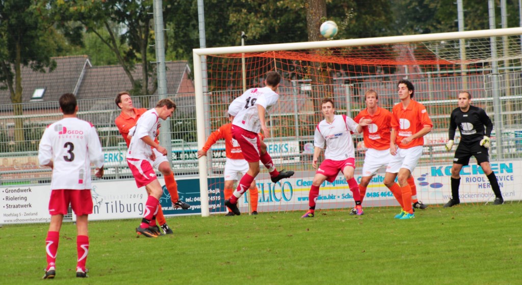 131006 DAW-AvesteynNa twee mooie overwinningen tegen Boekel Sport en Rhode moest Avesteyn het afgelopen zondag afleggen tegen het andere oranje D.A.W.. De mindere was Avesteyn in Schayk beslist niet, maar defensieve foutjes deden de voor deze gelegenheid in het wit/rood gestoken Avesteyn min of meer de das om.