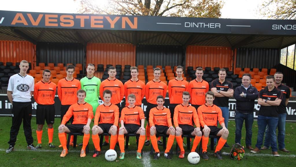 Op zaterdag 22 november jl. kreeg de A1 van RKSV Avesteyn nieuwe kleding uitgereikt. Alle spelers kregen en een volledig wedstrijd tenue (shirts, broekjes en sokken) en een trainingspak. Jeroen van den Broek van Café Zaal de Toren uit Dinther, sponsor van dit alles, sprak het team toe en wenste de spelers en de leiding veel plezier met de kleding.