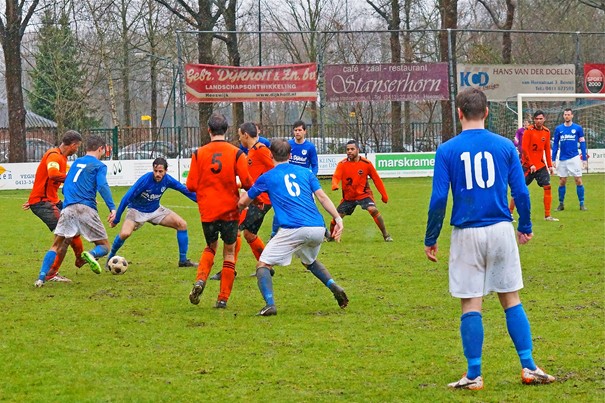 Foto’s: Strijd om de bal en Vreugde na de 1-0 van Wout Cuijpers (foto’s Hans Heesakkers)