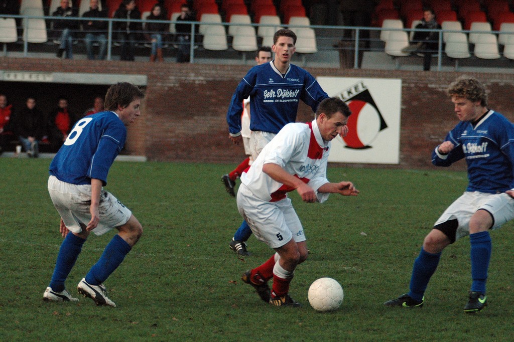 Mark van den Berg frommelde zich een weg richting het doel van Patrick Lunenburg en met enig fortuin werkte hij de bal in het doel. De 1-0 was een opsteker voor Volkel, dat de punten hard kan gebruiken, maar tegelijkertijd een signaal voor Heeswijk om de mouwen eens extra op te stroken. En dat resulteerde in doelpunten. De 1-1 kwam van de voet van Rob Tips. De aanvallende middenvelder van Heeswijk was het eindpunt van een prachtige aanval en schoot beheerst binnen. Nog voor rust werd het ook 1-2. Camiel van Doorn nam een vrije trap verrassend snel en bediende Frank Dobbelsteen op maat. Heeswijks nummer 9 had geen moeite met dit buitenkansje en zette zijn ploeg op voorsprong.