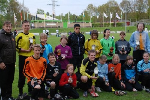 joyce_groepsfoto_beste_keeper_van_nlJoyce, Marc, Laurens, Roeland en Robin deden het zelfs zo goed dat ze in de finale terecht kwamen en daardoor verzekerd waren van deelname aan de Nederlandse keeperkampioenschappen die afgelopen vrijdag 14 mei zijn gehouden op het prachtige complex van VVOG te Harderwijk. De finales werden gespeeld om de titel van Beste Keeper van Nederland. Uit de voorrondes van alle keeperpromotie- en trainingsdagen hadden regionale finalisten zich geplaatst en dat leverde een felle strijd op voor de uiteindelijke titels.