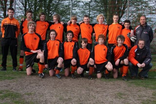 Op achttien skelterfietsen achter elkaar maakte het team van Avesteyn C1 zaterdag een feestelijke tocht door Heeswijk-Dinther om hun kampioenschap te vieren. Met het ongeval met de platte kar in Boekel nog vers in het geheugen, had het jeugdbestuur gekozen voor deze veilige manier.