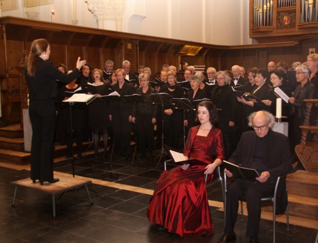 Het vierstemmige koor van 40 zangers werd bijgestaan door 4 solisten: sopraan Kathelijn van Dongen, alt Danilla Buijck, tenor Aart Mateboer, en bas Kees van Hees.