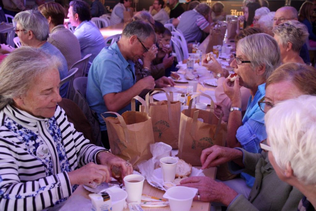Gewapend met een 'Ontbijtbon' namen vanmorgen in en naast de grote tent op het marktplein een paar honderd mensen deel aan het gezamenlijke ontbijt dat de herdenkingsperiode 70 jaar bevrijding HDL afsluit. Het evenement werd muzikaal ondersteund door Koninklijke Fanfare Sint Willibrord en met zang door Katja Brooijmans. Klik hier voor foto's.