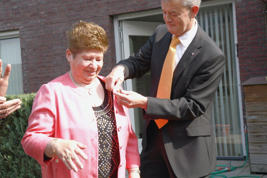 “U heeft een overvolle agenda. Er staat geen lege plek in, maar ook voor uw kinderen en kleinkinderen en buurtgenoten staat u altijd klaar”, vervolgde Rien Wijdeven zijn toespraak. “Deze lange staat van dienst voor de samenleving en de samenhang van al deze activiteiten is een reden om u bij deze te benoemen tot lid in de orde van van Oranje Nassau.” Een kleine traan van ontroering biggelde over Marietjes wang.