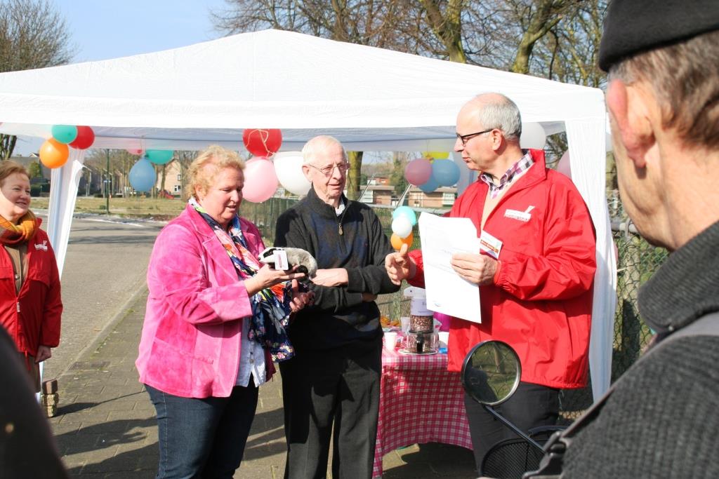De Stichting Hertenkampje aan de Irenestraat ontving vanochtend de Das Mooi prijs uit handen van fractievoorzitter Cent van den Berg van Progressief Bernheze. Het bijbehorende geldbedrag van € 250,00 is een