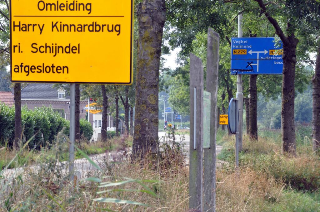 Automobilisten kunnen omrijden via de Middelrooijsebrug of langs het kanaal via de A50, richting Schijndel.