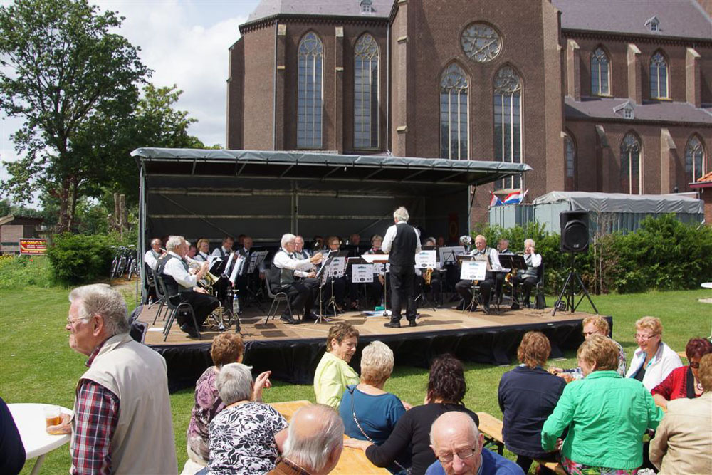 Een drietal groepen verzorgde deze middag, die werd geopend door de jubilarissen, gevolgd door het Veteranenorkest uit Schijndel en de Durzakkers uit Nistelrode. Vrolijke klanken klonken over de talrijke bezoekers en over de prachtige ontmoetingstuin, werkelijk een toplocatie.