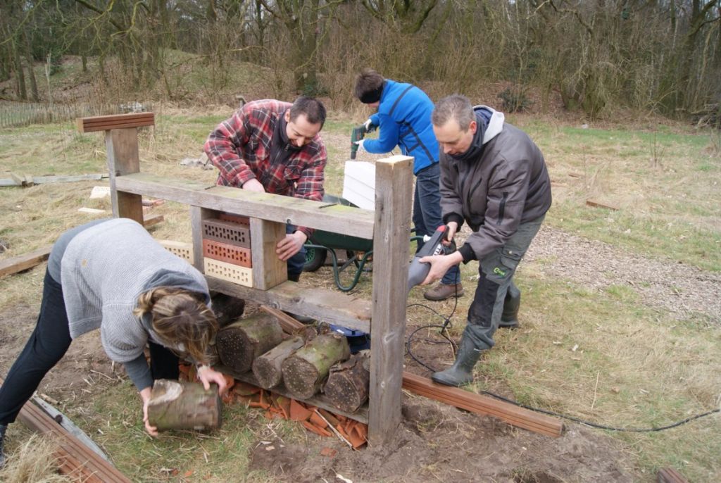 Een tiental vrijwilligers is vandaag in touw om de Ontmoetingstuin gereed te maken voor het nieuwe seizoen, dat start met de open dag op zaterdag 23 maart (vanaf 13.30 u. - 16.30 u.). Vandaag wordt er een tuinhuisje opgebouwd. Dit zal velen bekend voorkomen, want in een vorig leven diende dit als kiosk in Natuurtheater De Kersouwe. Een fraai voorbeeld van hergebruik.
