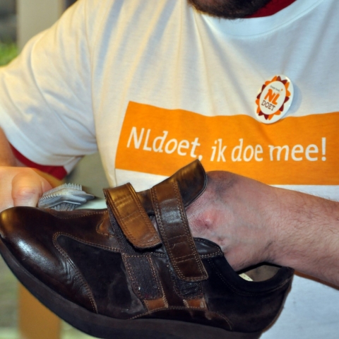 Medewerkers van Intrakoop, een inkoopcoöperatie voor zorginstellingen uit Waardenburg, kwamen afgelopen vrijdag 20 maart naar Heeswijk om bij Cunera/De Bongerd rolstoelen en rollators schoon te maken, schoenen te poetsen en handen en nagels van cliënten te verzorgen. Laverhof waardeert deze actie zeer. De medewerkers van Intrakoop doen dit op vrijwillige basis in het kader van de grootste vrijwilligersactie van Nederland: NLdoet!