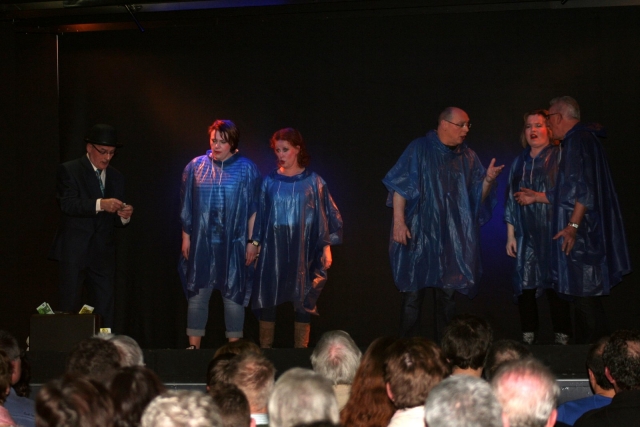 De eigen schrijvers hebben weer tal van sketches en liedjes geproduceerd in samenwerking met decorontwerpers en bouwers, ook mensen van het licht en geluid, kleding en grime. Onder leiding van regisseuse Betsie van de Cammen laten allen graag weer het publiek genieten van een geweldig avondje met van alles wat. Dat is zeker gelukt, 3x een volle zaal, en het was genieten. Klik hier voor foto's.