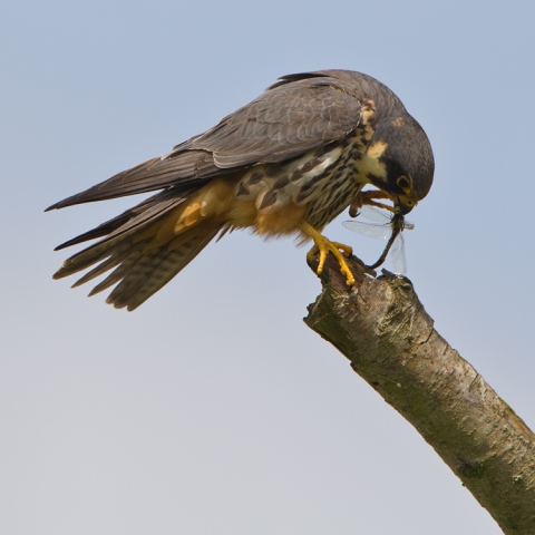 De boomvalk is een kleine, snelle roofvogel die jaagt op grote insecten met name libellen en sprinkhanen. Deze worden in de vlucht gevangen en verorberd. Ook zwaluwen, vinken en spreeuwen worden door deze behendige vliegers zo uit de lucht geplukt. De boomvalk is in Nederland een schaarse broedvogel. Het aantal boomvalken neemt al tientallen jaren gestaag af. De boomvalk broedt erg laat - in de maanden juni en juli - waarna ze in september weer naar Afrika vertrekken om daar te overwinteren. Voor meer informatie kijk op www.vwgoss.nl of www.vogelwachtuden.nl.