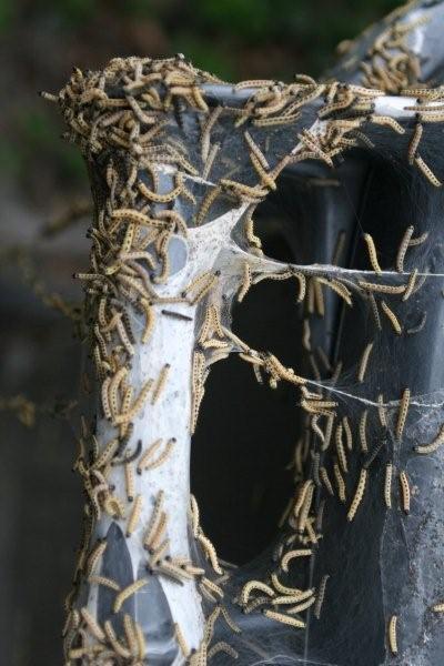 Bij de familie vd Heijden aan de Hoofdstraat 77 is een rupsenplaag. Een boom volledig ingesponnen en wordt bewoond door duizenden rupsen. Een natuur wonder dat de fotograaf met verbazing aanschouwde