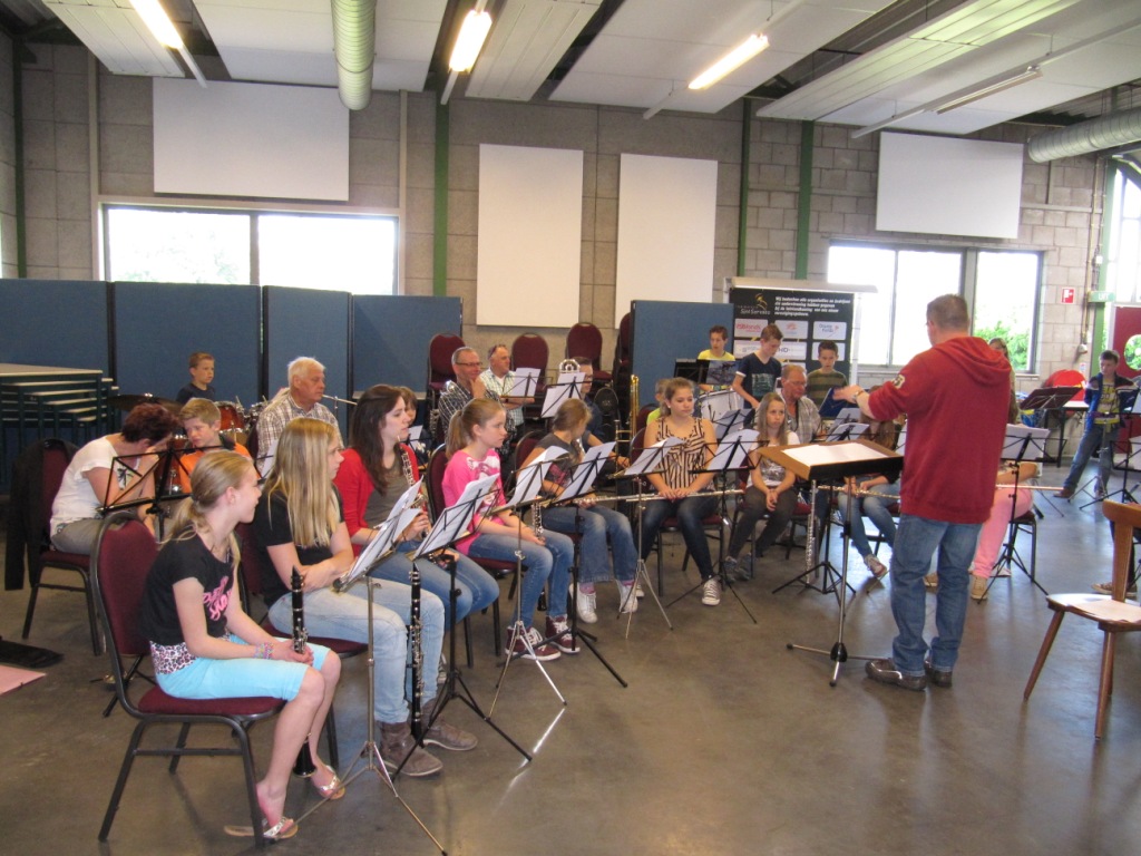 Zondag 18 mei jl. werd het weekend afgesloten met een slotconcert in De Muziekfabriek voor belangstellende broers, zussen, ouders en opa’s en oma’s. In sneltreinvaart kwamen aanstekelijke nummers als de Cup-song, Roar, Gang-nam style en Waka waka langs. Tussendoor zorgde de C-selectie van het slagwerk voor de nodige percussie.