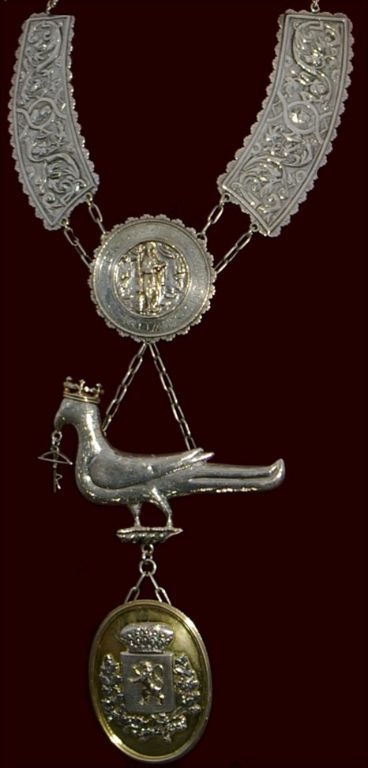 De zilveren vogel die aan de borstplaat hangt dateert al van 1476. Kennelijk was het gilde dus al ver vóór 1596 actief. Behalve de koningsketting is het gilde ook in het bezit van twaalf oude koningsschilden. De oudste dateert van 1696, de ‘jongste’ van 1879. Dankzij deze schilden, maar ook dankzij het zielboek, waarin alle overleden gildenbroeders staan opgetekend, is te achterhalen wie er lid waren van het gilde en welke familiebanden er tussen de gildenbroeders hebben bestaan. Uit de afbeeldingen op de schilden is bovendien te achterhalen wat het beroep was van de koningschutters.