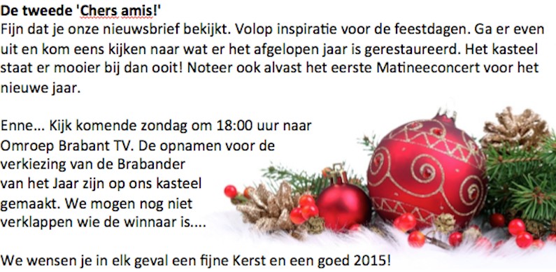 Vanaf 2de Kerstdag t/m dinsdag 30 december gaat het kasteel weer open met een divers activiteitenprogramma voor wie die dagen even niet weet wat te doen of waar naar toe te gaan. In het programma springt dat van zondag 28 december het meest in het oog.