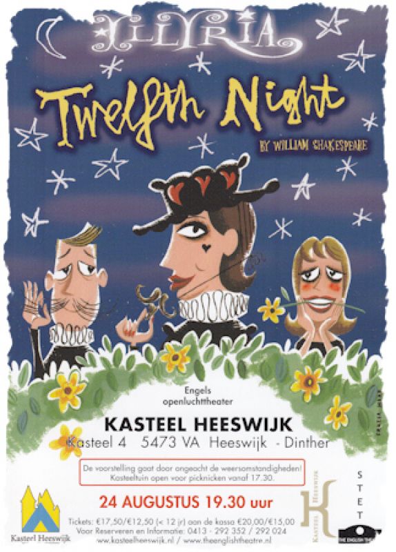 Op woensdag 24 augustus 2011 speelt het Britse gezelschap Illyria - in de hen inmiddels vertrouwde kasteeltuin van Kasteel Heeswijk - de romantische komedie ‘Twelfth Night, or What You Will’ van William Shakespeare.