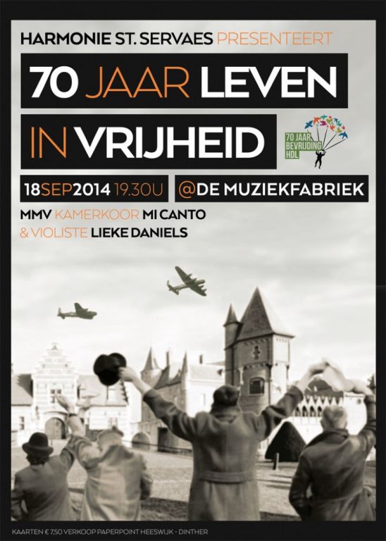 Op woensdag 17 september is het precies zeventig jaar geleden dat in Heeswijk-Dinther en Loosbroek de bevrijding van de Duitsers naderbij kwam. Een historische gebeurtenis die in september groots gevierd gaat worden. Tijdens een tiendaagse bevrijdingsevent gaan er onder het thema ‘Van donker naar licht’ veel activiteiten plaatsvinden in Heeswijk-Dinther. De harmonie neemt hier ook aan deel met een concert “70 jaar leven in vrijheid” op donderdag 18 september om 19.30 uur.