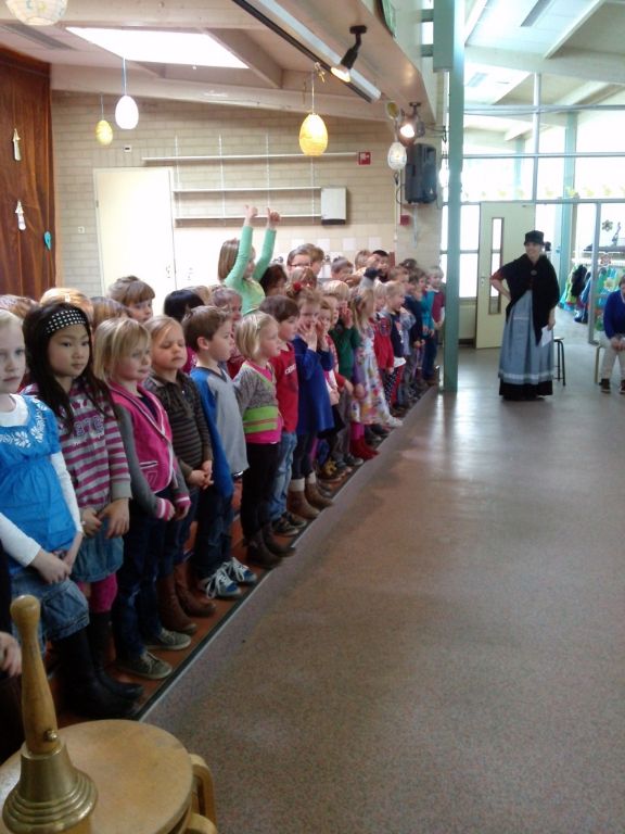 130322 OpaOmadag_3Deze week zette OBS de Bolderik de deuren open voor de opa’s en oma’s van de kinderen uit de groepen 1 t/m 3. Dit alles omdat deze groepen de afgelopen periode terug zijn gegaan in de tijd van hun opa’s en oma’s.Groep 3 deed mee aan het project van Erfgoed Brabant; Tonnie en Kee in Keutelree. Zij beleefden het verschil tussen een dorpje in Noord-Brabant en een grote stad in Amerika. Omdat een van de kinderen uit groep 3 binnenkort naar Amerika gaat verhuizen was de nieuwsgierigheid en betrokkenheid erg groot.