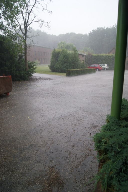Gisteravond was er hier en daar al een druppel gevallen, maar het mocht weinig naam hebben. Vanaf een uur of acht waren de voorspellingen helder. Er komt een flinke hoosbui, met hele pittige buien, windstoten en onweer op ons af. Rond 11 uur was het zover. Pluvius zette de kraan wagenwijd open....voor even maar. Toen was het weer over en vanmiddag kwam het vertrouwde zonnetje weer terug.
