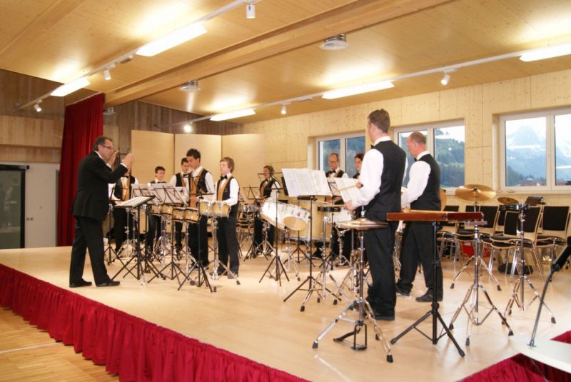 DSC06853Op vrijdagavond hadden we een concert in een fantastische concertzaal in Grän. De plaatselijk Musikkapelle ontving ons daar hartelijk. Het gemeenschapshuis had een geweldige akoestiek, door de speciale wand- en plafondpanelen. De A-selectie van de slagwerkgroep, was ‘maar’ met 11 slagwerkers in Oostenrijk, maar zij speelden allemaal voor twee. Het werd een prachtig concert onder leiding van dirigent Tonn van de Veerdonk met acht nummers, waar de vonken van af sprongen!