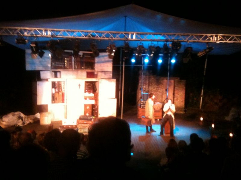 Terwijl op afstand het naderende onweer met flitslichten de sobere lichtshow ondersteunden, kwam met name de timing en de mimiek van de beide spelers in de stilte van de Heeswijkse bossen goed tot haar recht. Stemmige muziek zorgde op goed gekozen momenten voor de rest.
