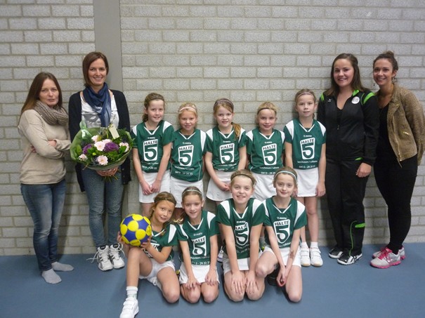 In een moeizame eerste helft konden we tot de stand van 2-2 op gelijke hoogte blijven. Daarna kregen we de bal moeizaam bij en in de korf. De rust gingen we in met de stand van 5-3. De tweede helft namen we revanche en na enkele wissels bij de thuisploeg konden we uitlopen en met de winst naar huis keren. Eindstand 6-10. Door goed samenspel konden veel verschillende dames scoren. Doelpunten van: Marita 2x, Juliënne 2x, Wieneke 2x, Angelique, Jolanda, Marice en Chantal.