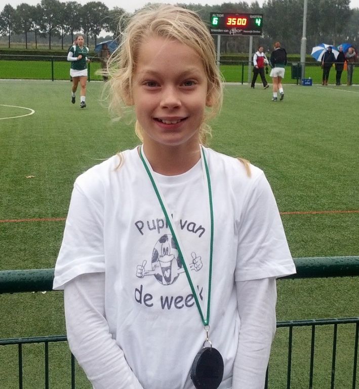 Na twee zware tegenstanders hebben we vandaag de eerste punten binnen gehaald. We kunnen vandaag laten zien dat we toch al iets geleerd hebben en al weer een beetje aan het grote veld gewend zijn. We staan in de rust met 4-1 voor. Na de rust gaan we door met scoren. Soms wat gehaast omdat we allemaal willen scoren en luisteren is bij sommige ook nog moeilijk. We winnen uiteindelijk met 8-1. Doelpunten zijn gemaakt door: Mirte 2x, Isis, Marit, Marleen 2x en Floor D 2x. Wij zijn reuze blij met deze overwinning. De eerste 2 punten zijn binnen op naar de volgende.