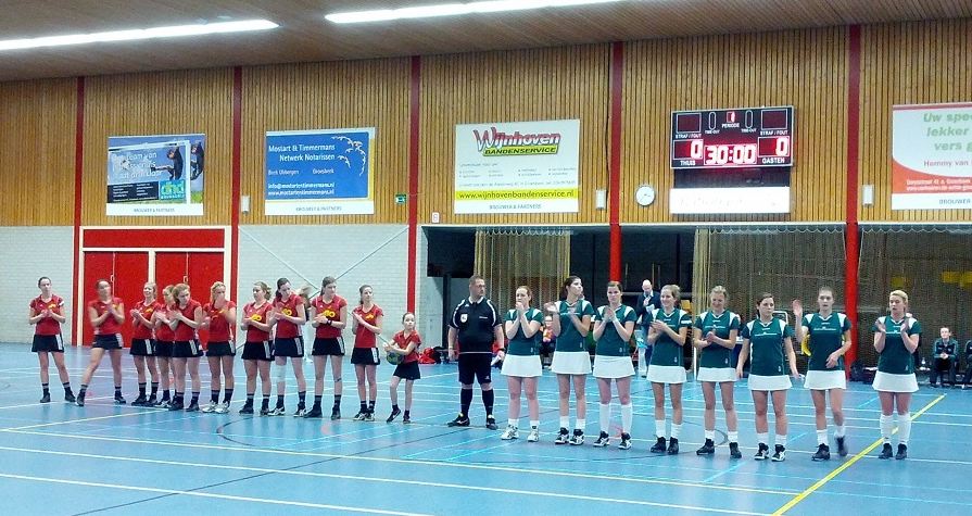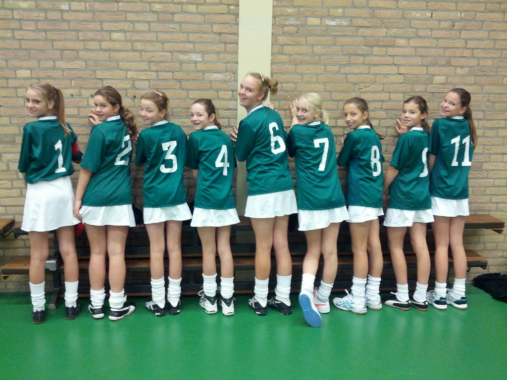 We gingen als een speer van start. Binnen enkele minuten stonden we met 4 doelpunten voor en konden we de voorsprong ook nog verder uitbouwen. De aanvallen liepen goed en er werd gemakkelijk gescoord. Verdedigend kwamen we niet echt in de problemen waardoor we met een mooie voorsprong konden gaan rusten. In de eerste tien minuten van de tweede helft had de tegenstander de manier van verdedigen aangepast en werd het moeilijk om goede aanvallen op te zetten. Er werd helemaal niet gescoord en even leek het erop dat we het misschien nog moeilijk zouden krijgen. Gelukkig was dit maar even... We wonnen uiteindelijk met 16-6. Ilse, Maartje, Marloes en Nienke: super bedankt voor het meedoen, jullie hebben het heel goed gedaan!