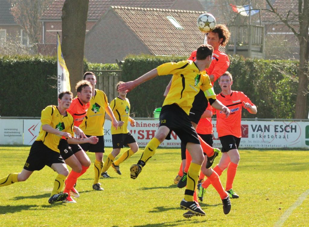 Avesteyn op voorsprong. Op aangeven van aanvoerder Roy Wijlaars was het Dries Heerkens, die in de 2e minuut Avesteyn op voorsprong bracht met een fenomenaal doelpunt(1-0). Na deze superstart ging Avesteyn goed door. Vijf minuten voor de pauze moest Hein v.d. Heuvel ingrijpen om een dot van een kans van Noud v. Stiphout ongedaan te maken. Ook goalgetter Sjoerd Vogels was op slag van rust gevaarlijk maar zijn kopbal ging toen maar net over het Avesteyn-doel.
