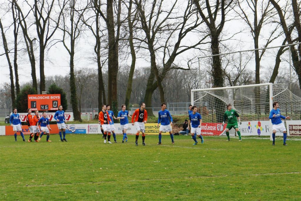 Het thuisteam startte het sterkst aan de wedstrijd, spelmaker Fouad Boulayounne was sterk aan de bal en stuurde regelmatig de snelle voorwaartsen uit Venlo, Van Veggel en Polman, diep. Echt gevaarlijk werd dit echter nog niet. De blauw-witten uit Heeswijk probeerden voetballend kansen te creëren, maar onnauwkeurigheid voorkwam dat de ploeg van trainer Vd Ven dreigend kon worden. Na 25 minuten kwam de thuisploeg op voorsprong. Een afgeslagen aanval werd opnieuw voorgezet en bleef in de doelmond voor Patrick Lunenburg hangen. Een Venlo-speler was attent om middels een beslissend tikje de Heeswijk-doelman te verschalken, 1-0. Vervolgens kwam Heeswijk iets beter in de wedstrijd, maar alleen vanuit een vrije trap van Van Doorn en een afstandsschot van Sleddens kwamen de gasten enigszins in de buurt van het Venlosche doel.