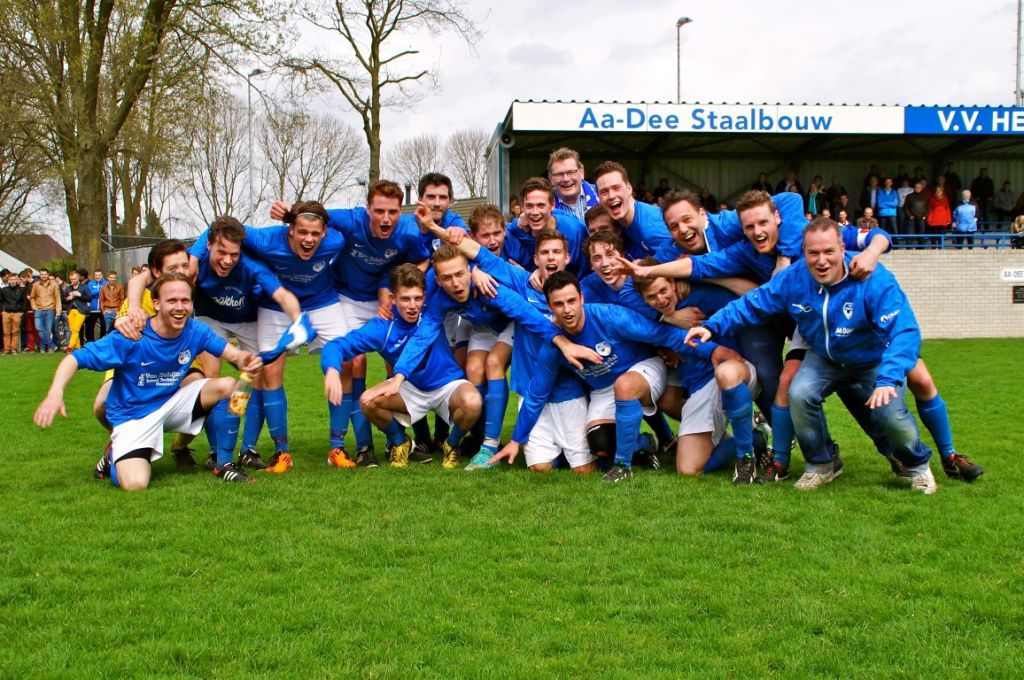 Met een overduidelijke 5-0 winst werd HVCH 3 geklopt en kon Heeswijk 2 zich de beste van de competitie noemen. Een topprestatie! Voorzitter Peer Verkuijlen feliciteerde de spelers en de staf na afloop op het veld, waarna Marijn van der Heijden namens de Vrienden van Heeswijk de mannen trakteerde op een vaatje bier. Samen met veel supporters, vrienden en andere betrokkenen heeft het team deze geweldige prestatie op zowel zondag als maandag groots gevierd. Ook de sponsors van het team, Jo van Schijndel Installatiewerken, Stukadoorsbedrijf Jos van der Pas en Claassen Uitvaartverzorging werden in de dank betrokken. De steun van sponsoren is volgens voorzitter Verkuijlen echt hard nodig om de vereniging draaiende te houden.