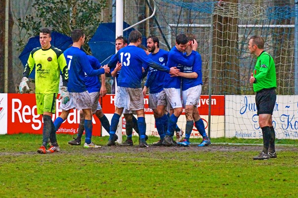 Foto’s: Strijd om de bal en Vreugde na de 1-0 van Wout Cuijpers (foto’s Hans Heesakkers)