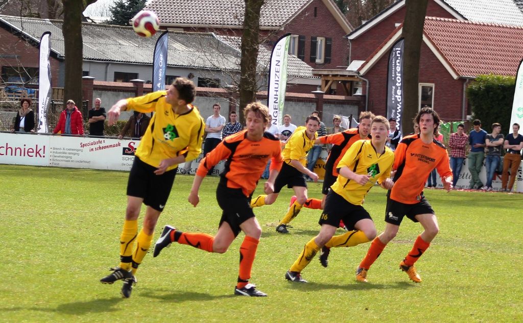 In het begin van de topper in de vierde klasse G leek het Boekels kampioensfeestje niet door te gaan. Als de gasten uit Boekel de volle winst wisten te halen op Dinthers grondgebied dat zou het kampioen worden en weer direct terug te keren naar de derde klasse. Zo'n 400 enthousiaste supporters uit Dinther en Boekel waren getuige van een topduel in een heerlijk voorjaarszonnetje.